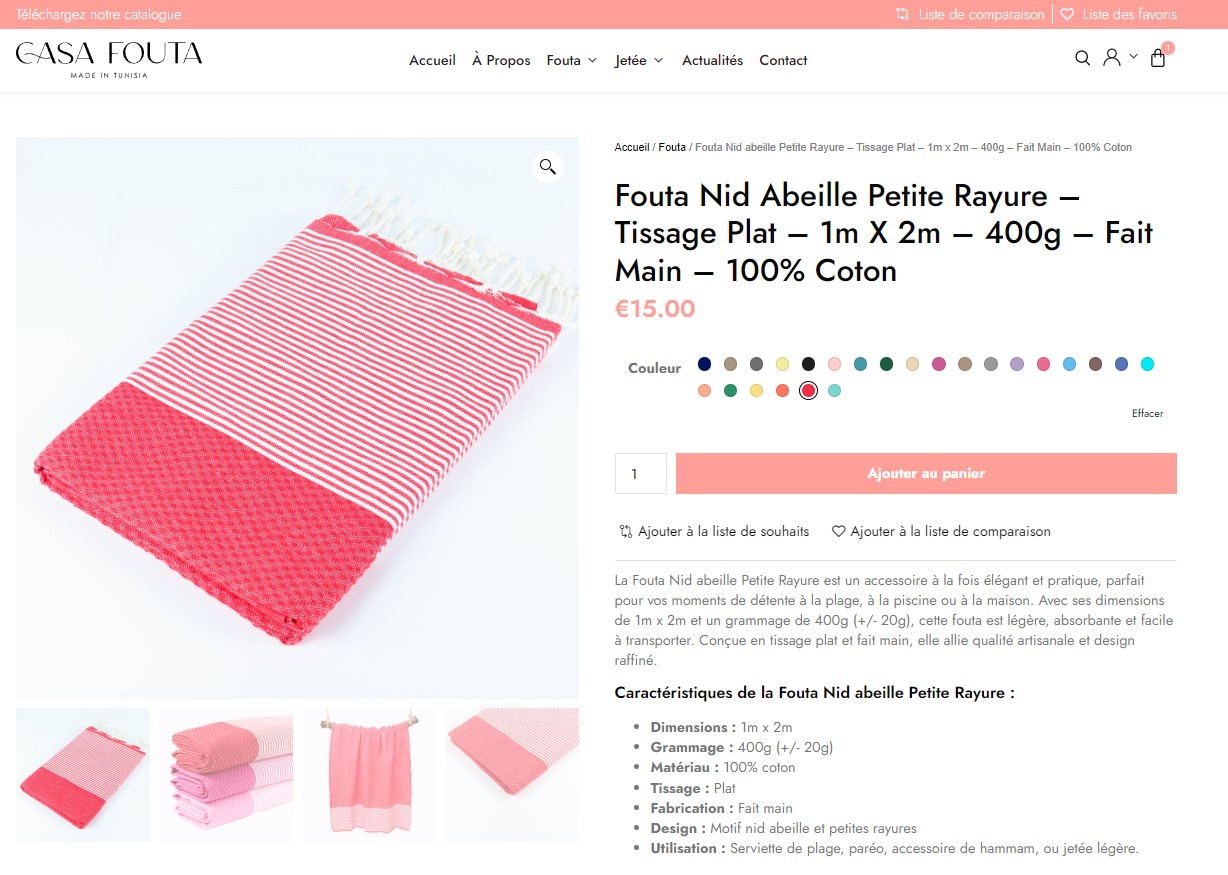 Casa Fouta : grossiste de foutas à tissage nid d’abeille en France