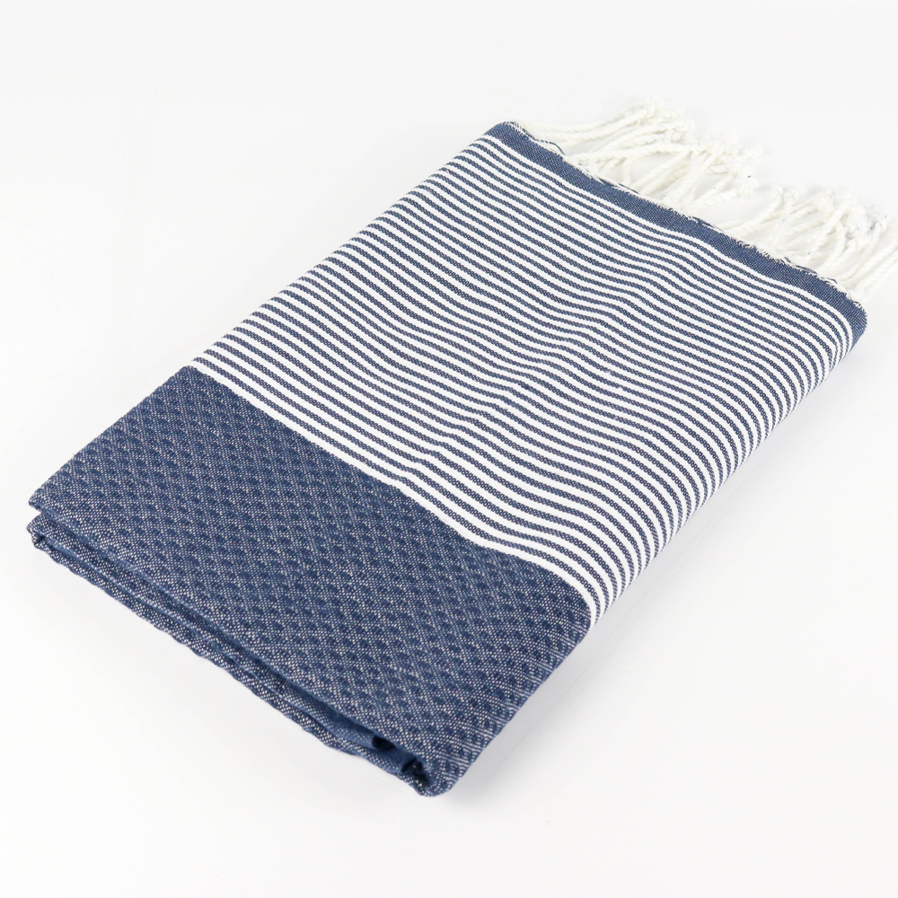 - Finitions artisanales : les foutas tissées à la main avec un motif nid d’abeille gardent leur souplesse même après de nombreux lavages.